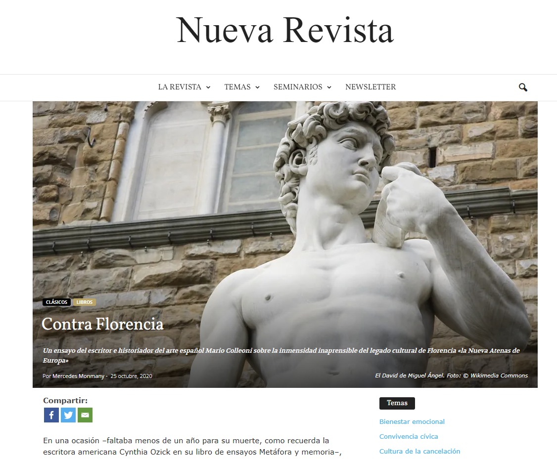 En una ocasión –faltaba menos de un año para su muerte, como recuerda la escritora americana Cynthia Ozick en su libro de ensayos Metáfora y memoria–, Henry James se sintió profundamente herido por una dura acusación de H. G. Wells: «Es un leviatán que recoge piedritas». Wells lo acusaba de que en sus novelas «nadie tenía opiniones políticas definidas, ni religiosas, ni partidismos claros, ni siquiera lujuria o caprichos». James, evidentemente, siguiendo el credo que iluminó tanto su literatura como su magnífico ensayismo literario (según Borges, era sobre todo un autor que escribió «para la morosa delectación del análisis») manifestó que «lo que hace la vida interesante, lo que la hace importante, es el arte». «No conozco –dijo– sustituto de ninguna clase para la fuerza y belleza de sus procesos».